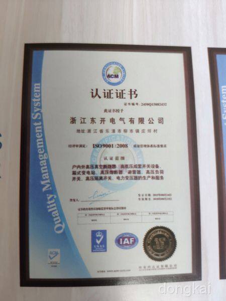 Zhejiang dongkai electric co., ltd. was established in 2009, is a set of research and development, production, sales in one of the comprehensive combination of industry and trade enterprises. The company is located in yueqing, the famous electrical capital of China, with convenient transportation by sea, land and air.The company specializes in r & d and production of indoor and outdoor high-voltage vacuum circuit breaker, permanent magnet fixed sealed vacuum circuit breaker, pre-paid vacuum circuit breaker, intelligent boundary switch, load switch, isolating switch, 10kv-40.5kv and more than ten series of products.The company has more than 5,000 square meters of production base, existing r & d, production, sales and management staff of more than 120, including more than 10% of senior professional and technical personnel, the company has a strong r & d, production capacity, the enterprise through iso9001:2001 quality management system, ISO14001 environmental management system and OHSAS18001 occupational health and safety management certification.Since its establishment in 2009, the company has established a good and stable cooperative relationship with many well-known electrical enterprises at home and abroad. At present, the company has formed a comprehensive and rapid market response capability integrating scientific research, manufacturing, business, logistics and service, and become a domestic high-voltage electrical manufacturing enterprise. The product has passed the inspection of national high voltage electric apparatus research institute.Zhejiang dongkai electric co., LTD. Specializes in the production of indoor and outdoor vacuum circuit breaker, load switch, sulfur hexafluoride circuit breaker, indoor and outdoor high-voltage isolating switch, vacuum load switch, grounding switch, operating mechanism, lightning arrester, fuse and other products. The company's products are widely used in domestic power companies, power stations, mines, oil fields, etc., won the unanimous praise of users.